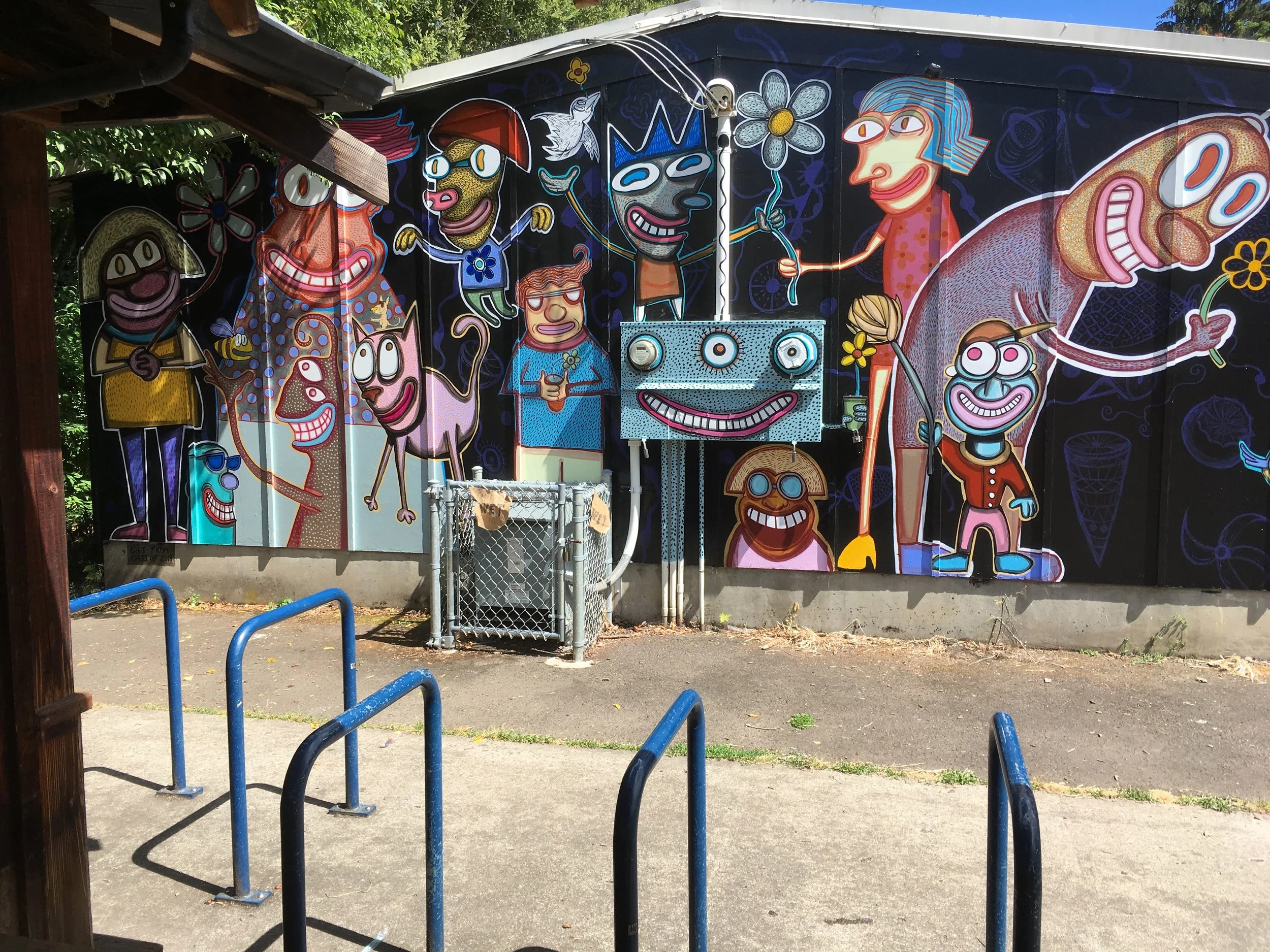 Bot murals take the interactive art idea to a larger scale, literally. Each Bot mural has a question embedded in the design: