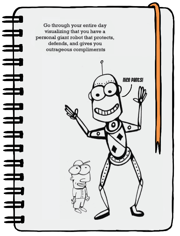 The Bots came about in 2010 when Gary created a sketch as a prompt (image on the right) in a co-creativity journal for On Your Feet. Weirdly tons of folks responded after receiving this drawing telling Gary all of the wonderful things that their invisible robot was telling them.